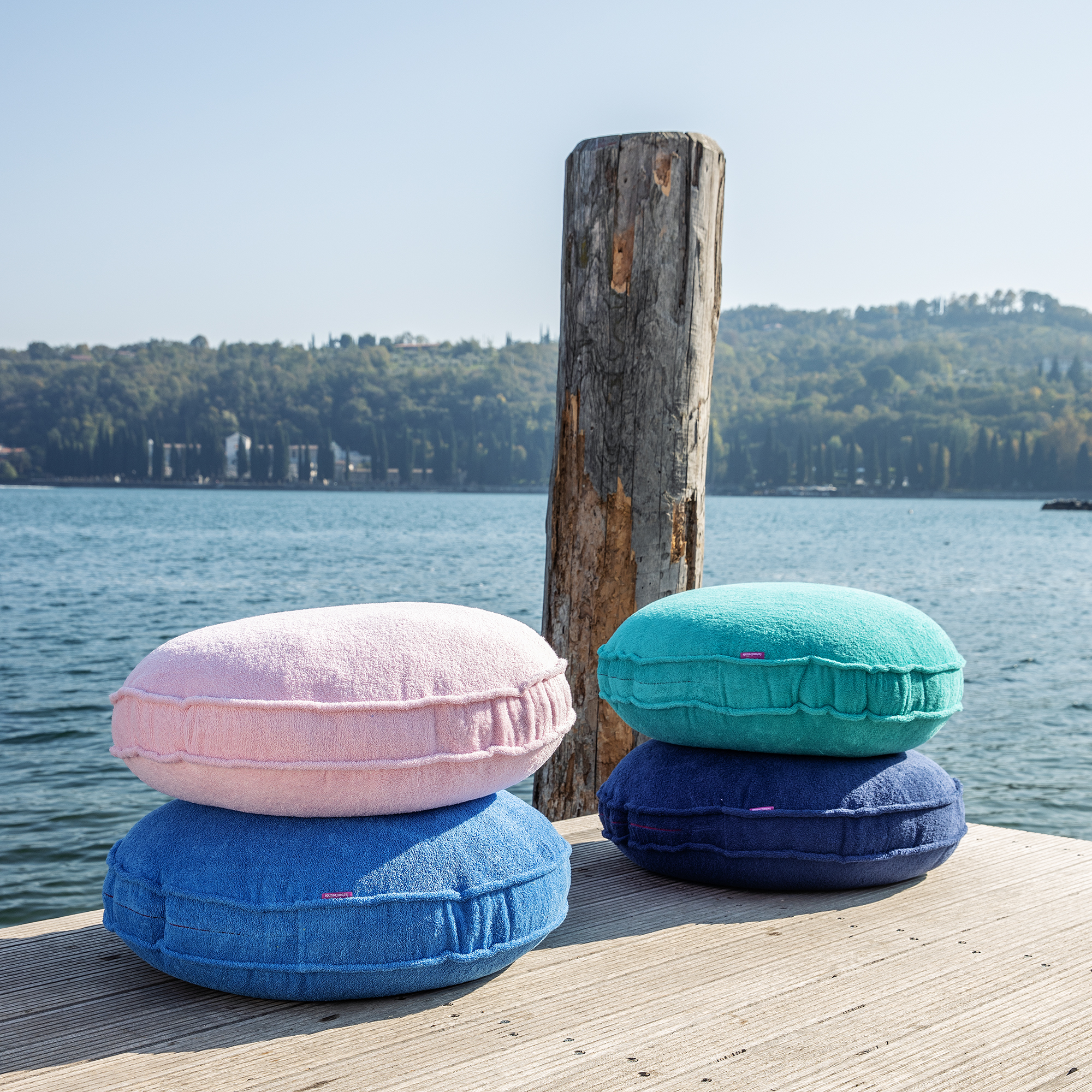 Wir lieben Frottee! Der Stoff besteht zu 100% aus Baumwolle. Dadurch ist er besonders hautfreundlich bietet einen hohen Tragekomfort. Ein weiterer Pluspunkt für dieses Material ist, dass es so wunderbar pflegeleicht ist. Unsere Frottee-Produkte können bei 30 Grad in der Maschine gewaschen werden und danach in den Trockner. Unsere Erfahrung zeigt, dass das Material selbst nach zahlreichen Wasch- und Trocknergängen noch genauso schön ist, wie am ersten Tag. Da unser Frottee vor der ersten Wäschenicht schlingenfest ist, kann es passieren, dass sich im Kontakt mit Gegenständen (z.B. Schmuck) ein Faden zieht. In diesem Fall ziehen Sie den Faden bitte nicht weiter, sondern schneiden Sie ihn einfach ab. Mit der nächsten Wäsche wird der Faden sicher versiegelt. Wie alle Naturmaterialien ist auch Frottee nur bedingt lichtecht (Lichtechtheit: Stufe 4). Wenn Sie Kissen, Taschen oder Handtücher direktem Sonnenlicht (dies gilt auch für Fenster) aussetzen, tun Sie dies in dem Wissen, dass die Farben verblassen. Die Farbveränderung gibt den Produkten aber oft eine Vintage-Note, was äußerst charmant sein kann. Kleiner Tipp: wenn Sie die Kissen regelmäßig drehen, verändern sich die Farben gleichmäßig.