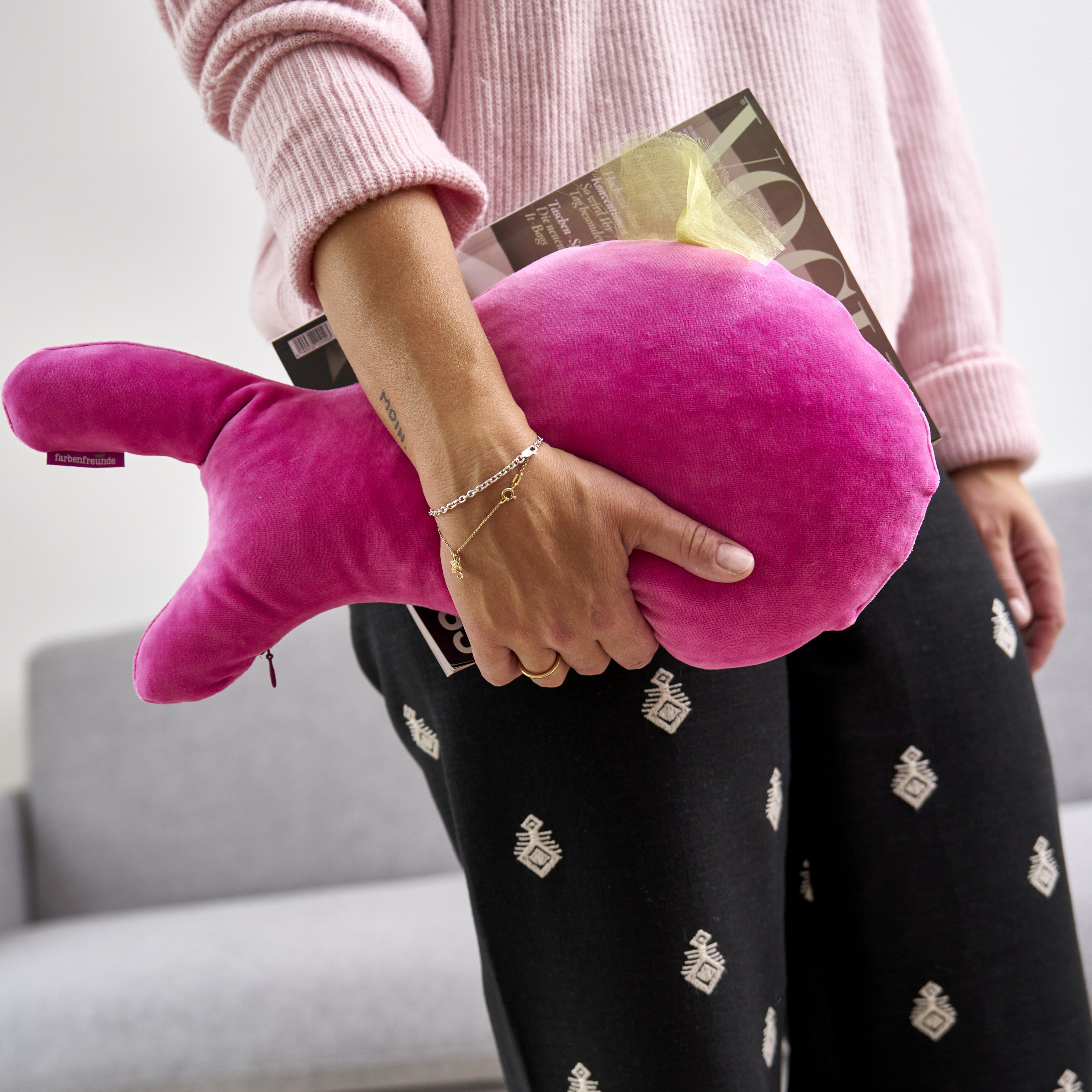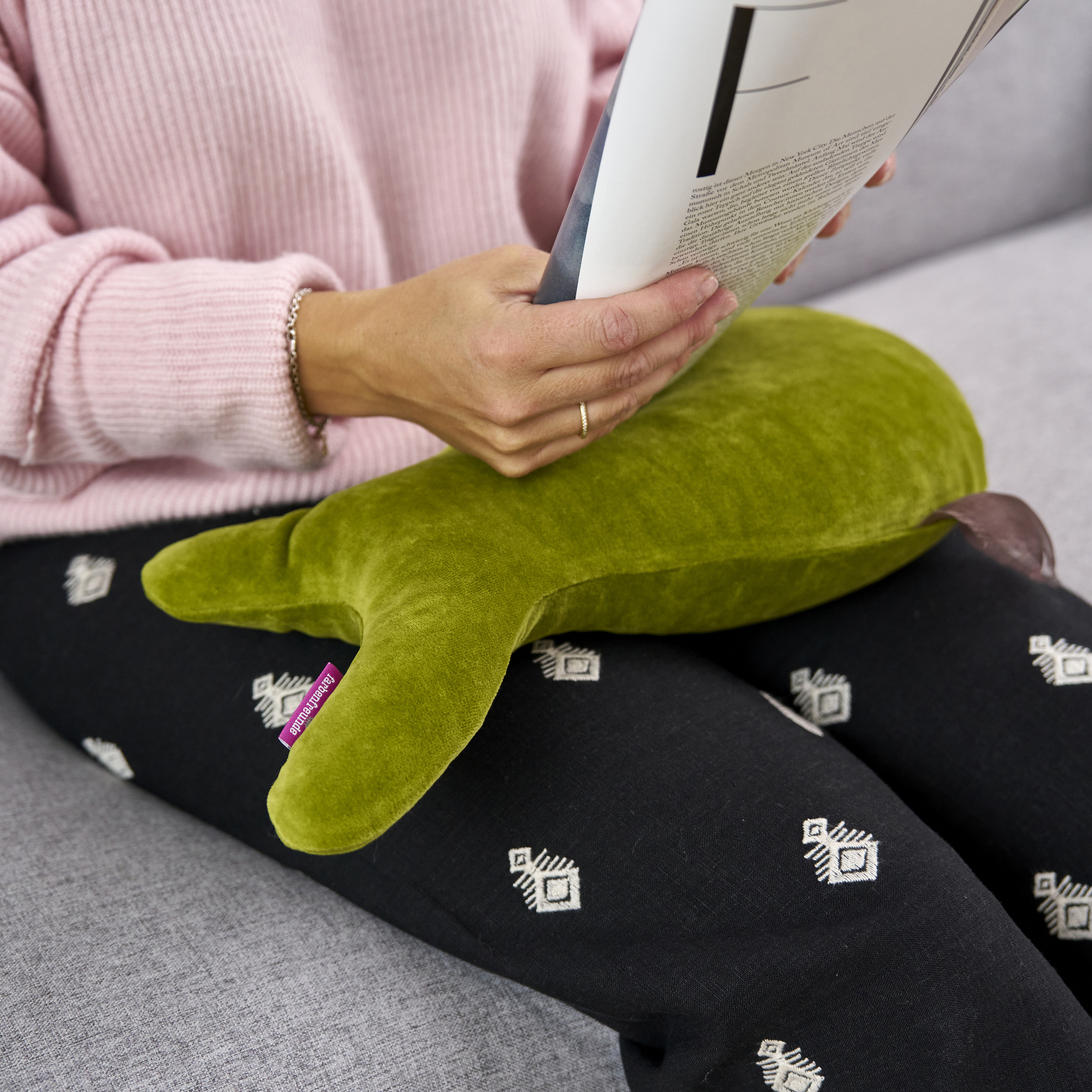 Der lustige Allrounder in charmanter Form ist aus der Serie Trouble Away. Ein praktisches Reisekissen zur Entlastung des Nackens oder auch einsetzbar als Yogakissen für unterwegs. Gefüllt mit 500 Gramm Dinkelspelz ist es auch wunderbar als Buchstütze zu nutzen. Durch seine Füllung bietet es Halt und Stabilität und seine Größe ist es ideal für jede Reisetasche.