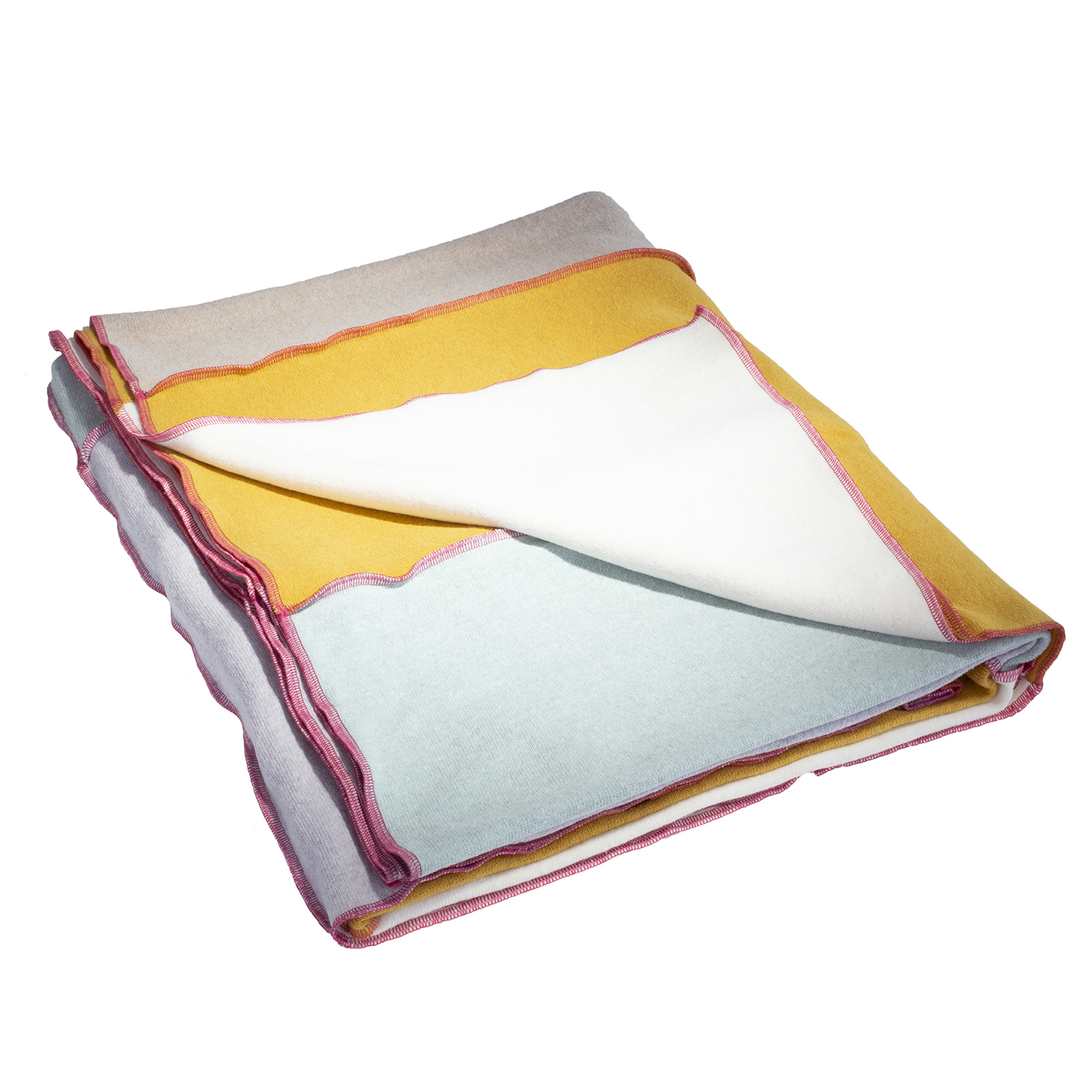 Diese Patchworkdecke in feinster Strickqualität besteht aus 20 Quadraten. Diese sind auf der Vorderseite mit einer fuchsiafarbenen Overloocknaht verbunden. Auf dieser Seite verläuft ein feines Maschenbild. Die Rückseite ist Fleeceähnlich und hat keine Nähte. Somit also perfekt für jede empfindliche Haut. Die besondere Nachhaltigkeit dieses Materials liegt in der Herstellung des sehr hohen recycelten Baumwollanteils. Hierfür werden gebrauchte Textilien sehr sorgfältig nach Farben sortiert. Ist dies geschehen, werden sie in kleinste Fasern zerteilt, gewaschen und mit einer Zugabe neuer Fasern wieder zu Garn versponnen. Der positive Effekt ist, Baumwolle muß nicht neu gepflant und gewässert werden, das Garn nichtmehr gefärbt werden. Die Umwelt wird nachhaltig geschont.